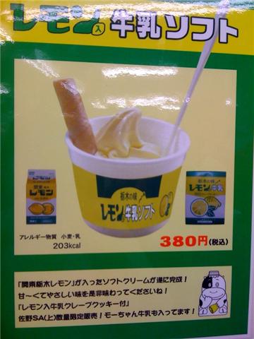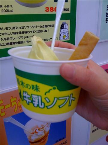 佐野SAで行列ができてたレモン入牛乳ソフト。