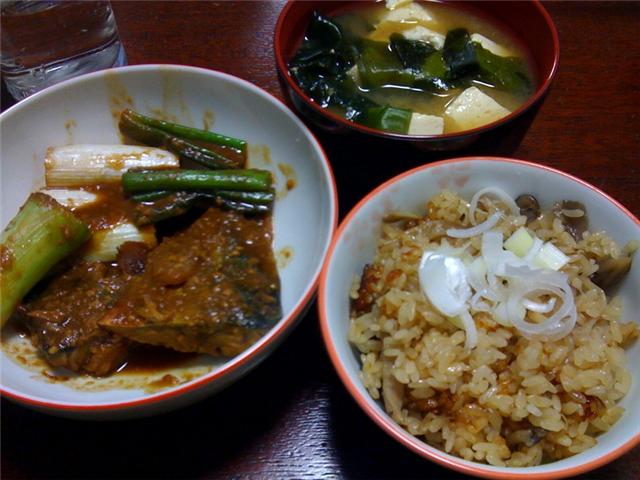 さばの味噌煮ときのこの炊き込みご飯です。